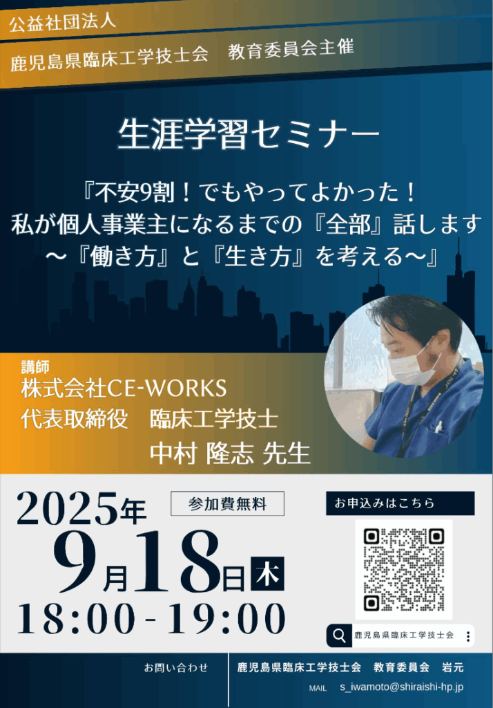 このたび、鹿児島県臨床工学技士会教育委員会主催の「生涯学習セミナー」にて、講演することになりました!